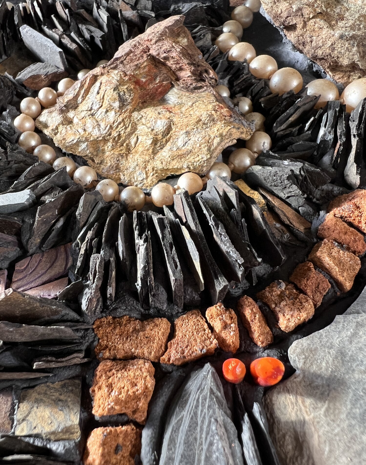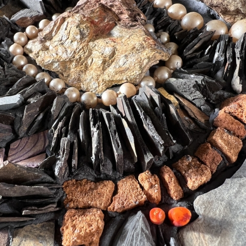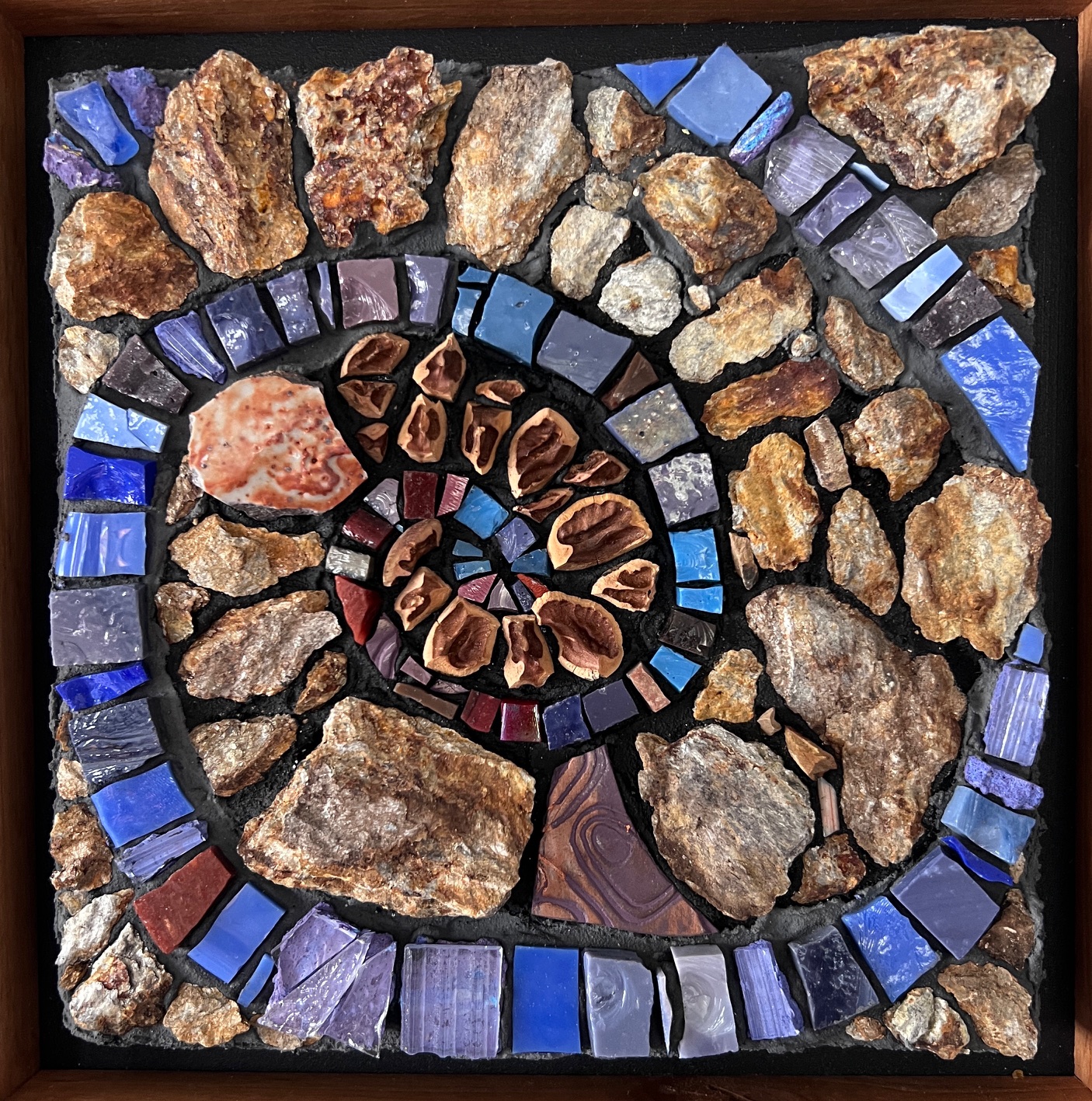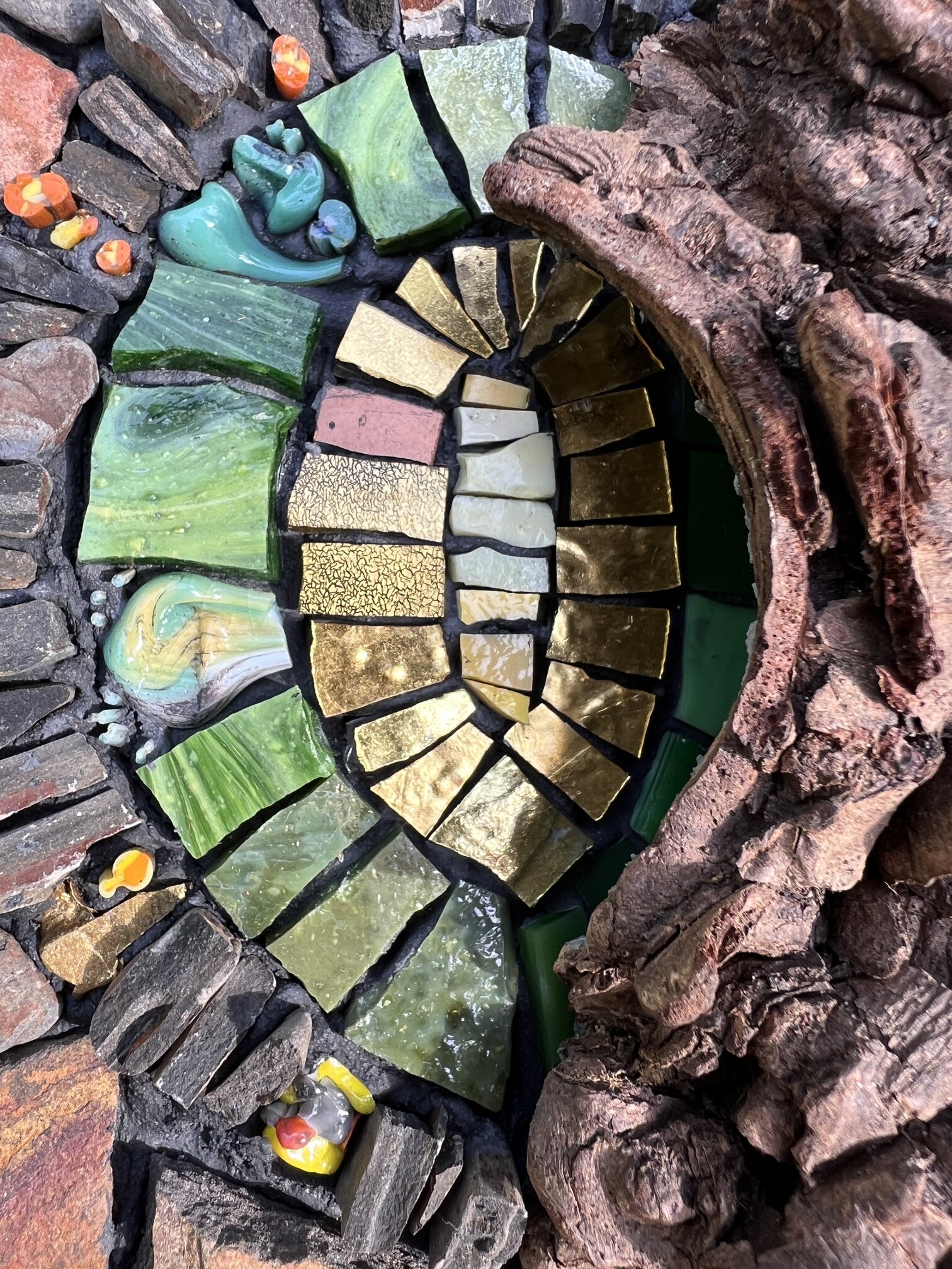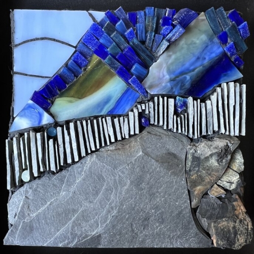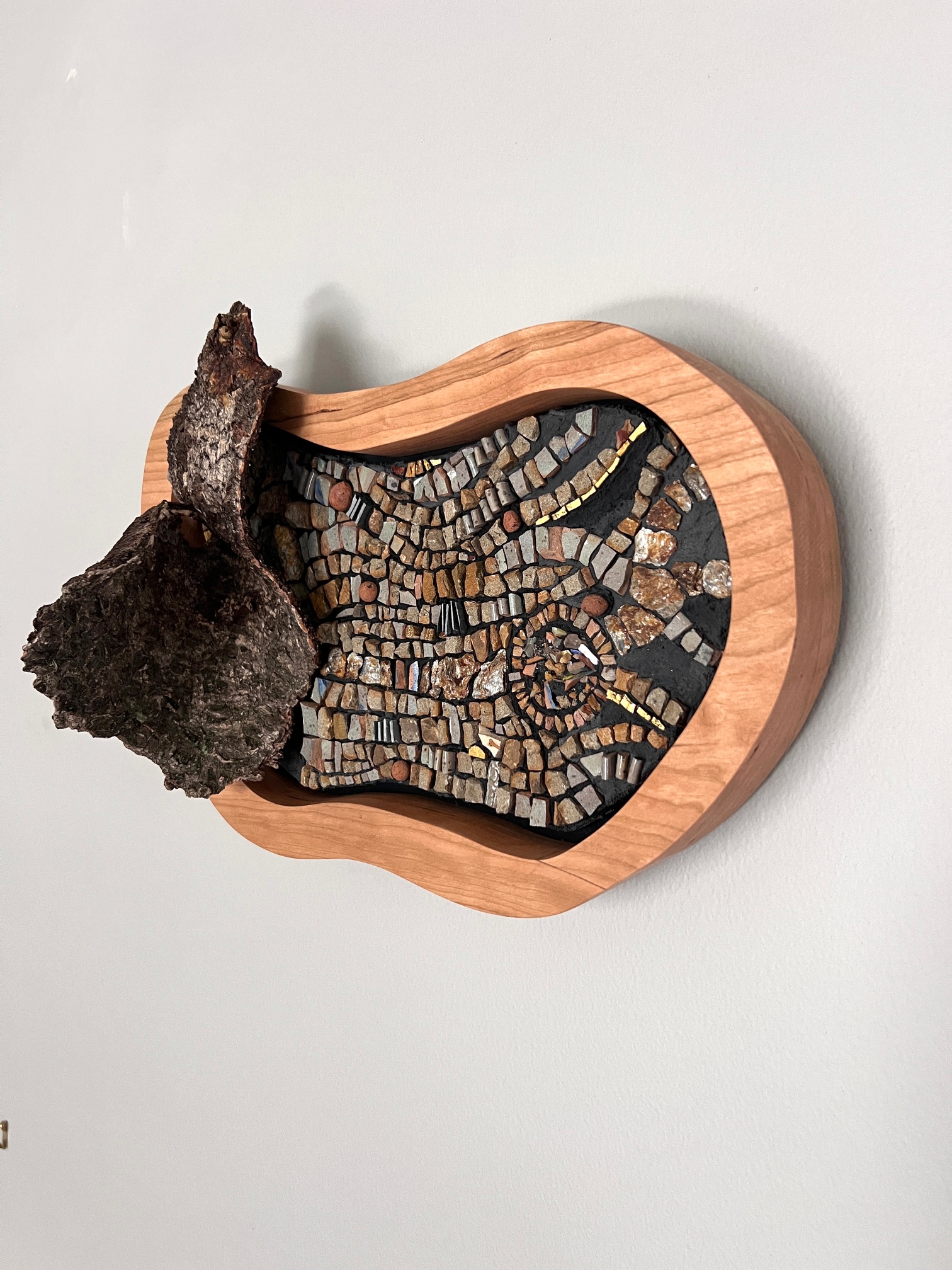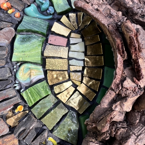 I create mixed media mosaics that celebrate the beauty, wonder, and healing power of nature. My mosaics are inspired by the magic I find while foraging in the natural world for slate, stone, mica, bark, shells, driftwood, mushrooms, and other treasures. Each piece begins with a walk, inspired by a deep reverence for nature and a curiosity about its colors and patterns. My work often tells a story about what it means to be on this human journey, exploring themes around joy, transformation, courage, presence, and rebirth.