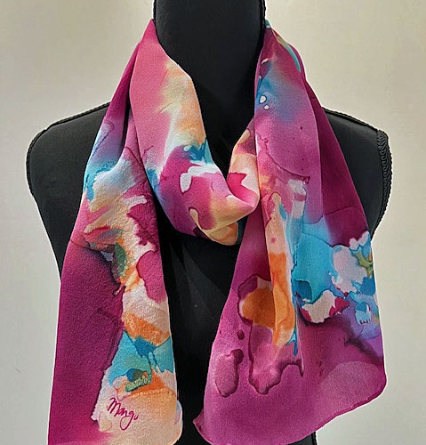 Asheville artist Margee Halsch produces colorful, energetic acrylic on canvas paintings and hand-painted silk garments using steam set dyes.Her artwork is located at Mountain Nest Gallery in Black Mountain, NC and Gallery 339 Hot Springs, NC.